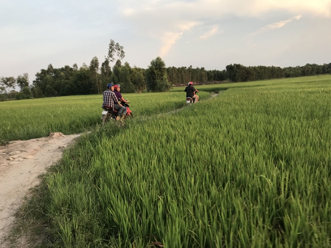 | Trinh sát hình sự tuần tra trên cánh đồng biên giới thị xã Kiến Tường. |