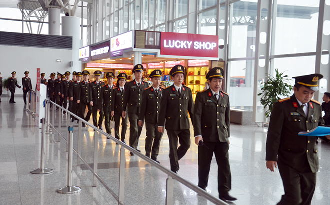 | An ninh được thắt chặt tại Sân bay quốc tế Nội Bài. |