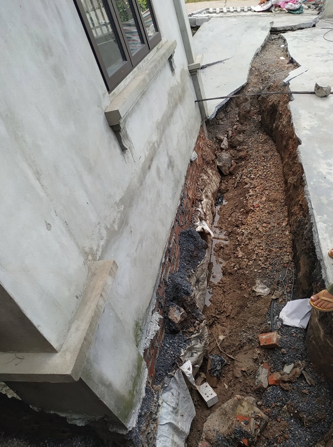 Thời điểm xảy ra vụ sụt lún, trong nhà anh Hòa có mẹ già ngoài 70 tuổi cùng 2 con nhỏ. Nhưng rất may, vụ sụt lún xảy ra chậm, nên khi nghe tiếng động đứt gãy của bê tông, người bà cùng hai cháu nhỏ đã kịp thời di chuyển ra phía ngoài.
