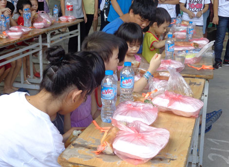 | Quyên góp bánh kẹo sau Tết cho trẻ em nghèo. |