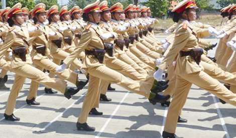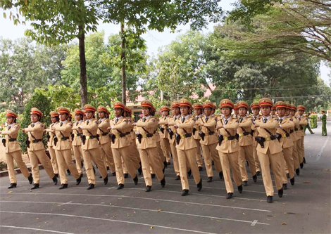 | Khối nữ sĩ quan CSGT trên đường luyện tập. |