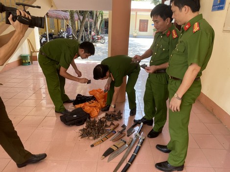 Qua khám xét khẩn cấp tại cửa hàng cầm đồ của Nguyễn Trọng Tưởng ở xã Văn Bình, huyện Thường Tín, cơ quan Công an phát hiện 2 bao tải vũ khí thô sơ và hung khí nguy hiểm, trong đó có 4 khẩu súng dạng súng thể thao, súng săn các loại và một số viên đạn...