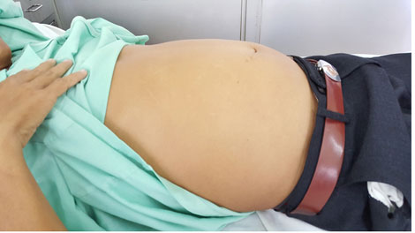 Bệnh nhân thứ nhất là ông Đỗ Đức L. (60 tuổi, ngụ tại Đồng Nai) nhập viện trong tình trạng đau bụng, bụng chướng lớn như thai phụ mang thai 8 tháng. Khai thác bệnh sử ghi nhận, khoảng 2 năm trước, bệnh nhân này có biểu hiện khó chịu, bụng bắt đầu to dần.