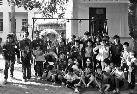 | Đội thanh niên tình nguyện Sông Mã chụp ảnh cùng các em nhỏ. |