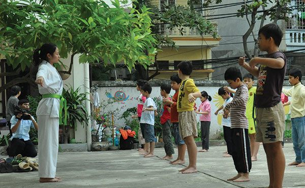 Chiều chủ nhật giá rét nhưng không khí ở Trung tâm nuôi dưỡng trẻ mồ côi Hà Cầu thật ấm áp và sôi động, bởi ở đây đang diễn ra buổi học võ thuật. Trên chiếc sân xi măng, vài chục đứa trẻ đang háo hức đứng xếp hàng và tự phân lớp.