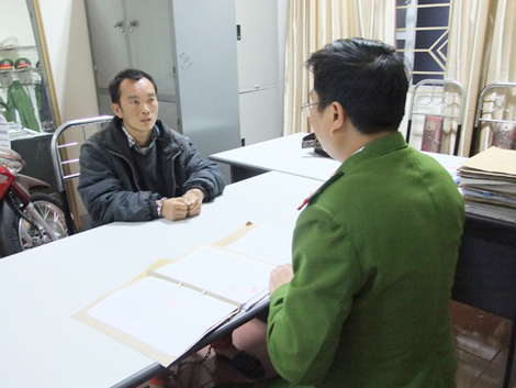 | Cán bộ Phòng Cảnh sát truy nã tội phạm - Công an tỉnh Lào Cai lấy lời khai một đối tượng bị bắt giữ. |