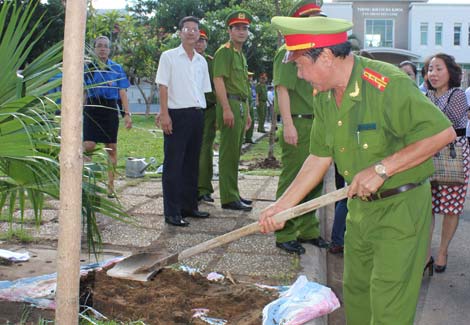 | Lãnh đạo Cục C49 tham gia trồng cây xanh bảo vệ môi trường. |