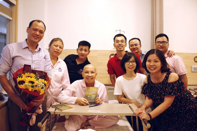 Buổi ra mắt sách diễn ra tại một hội trường nhỏ của Bệnh viện Ung bướu Hà Nội, nơi chị Cẩm Bào đang nằm điều trị. Vì điều kiện sức khỏe, các bác sĩ chỉ cho phép buổi ra mắt sách diễn ra trong vòng một giờ. Bởi chỉ mới ngày hôm qua thôi, chị Cẩm Bào vẫn còn đang sốt cao và phải dùng thuốc giảm đau mới có thể ngồi dậy được.