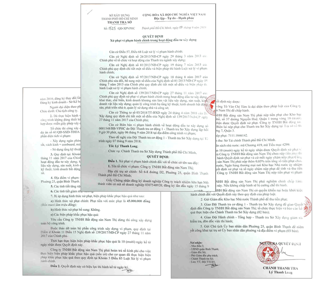 Xử phạt, tháo dỡ công trình sai phép trên nóc tòa nhà La Bonita Thanh tra Sở Xây dựng TP Hồ Chí Minh đã ra quyết định xử phạt hình chính và buộc Công ty Bất động sản Nam Thị tháo dỡ toàn bộ phần công trình xây dựng sai phạm tại tòa nhà La Bonita, số 6-8 đường D2, phường 25, quận Bình Thạnh, TP Hồ Chí Minh.
