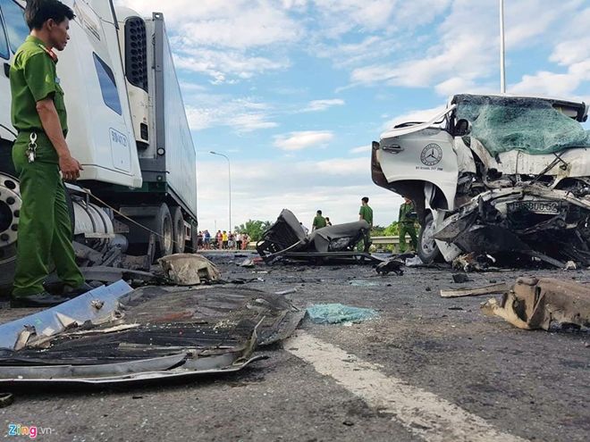Khi đến đoạn đường trên đã xảy ra va chạm với xe container mang BKS 51D-411.21 kéo theo rơ – moóc mang BKS 51R-215.75 chạy hướng ngược lại. Vụ tai nạn khiến chú rể - anh Nguyễn Khắc Long cùng 12 người khác trên xe ôtô tử vong và 4 người bị thương nặng.
