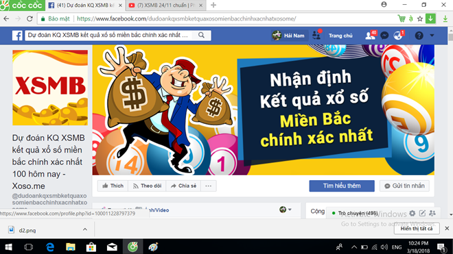 Để tìm hiểu tiếp về những "thánh số" này chúng tôi thay đổi tài khoản Facebook, sau đó vào một số trang khác. Một trang có tên "Soi cầu lô đề chuẩn" với hình đại diện là một ông thần tài.