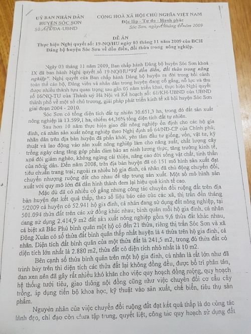 Vấn đề mà bà con bức xúc là khi triển khai Đề án đó tại xã, dường như chính quyền xã đã “lờ đi” các hướng dẫn này. Họ không những không làm theo hướng dẫn của huyện mà còn làm theo “chỉ đạo của thôn”, lấy chỉ đạo đó để thực hiện việc dồn điền đổi thửa.