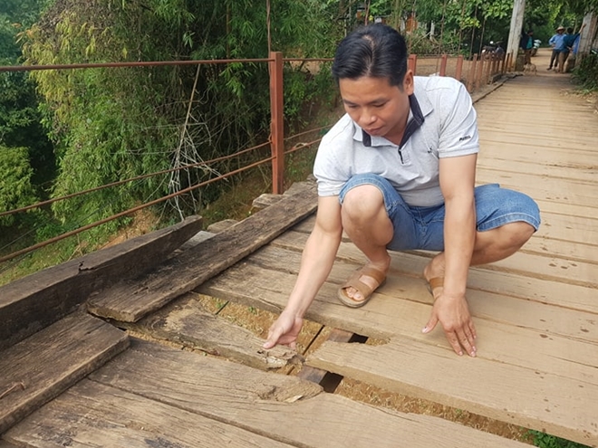“Chúng tôi cũng là con dân trong xã, thấy cảnh bà con và các cháu nhỏ hàng ngày phải qua cây cầu đó cũng lo lắng lắm, xót xa lắm. Chúng tôi cũng chỉ biết làm báo cáo lên huyện và xin kinh phí, chỉ đạo. Tất cả người dân và chính quyền địa phương cũng rất mong mỏi được xét duyệt kinh phí sửa chữa cây cầu”.