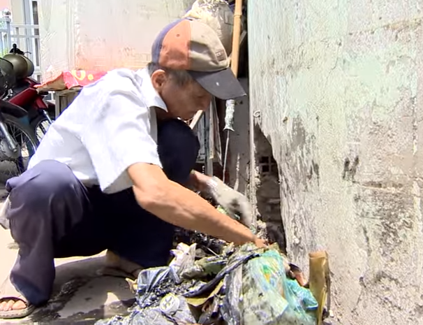 Còn ông Bảy, hầu như không có thời gian nghỉ ngơi. Ông nói: "Số tôi cả đời khổ cực, tự hành hạ mình thôi chứ có ai ép đâu. Mỗi ngày, tôi dậy từ lúc 4h sáng, tranh thủ ra kênh vớt rác sau đó lại lạch cạch đạp xe đi tới những vựa sắt vụn mua của người ta rồi về đổ lại kiếm lời được khoảng 30 - 40 ngàn đồng".