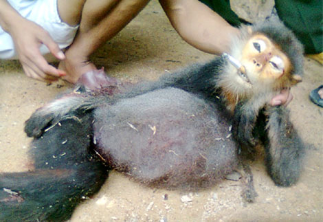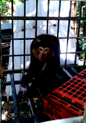 Một cá thể khỉ tại Sơn Trà (Đà Nẵng) được "giải cứu" khỏi bàn nhậu vào cuối tháng 9/2015.