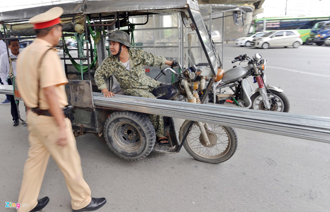 | Chở hàng cồng kềnh, nghênh ngang trên phố, nguyên nhân của nhiều vụ tai nạn thương tâm. |