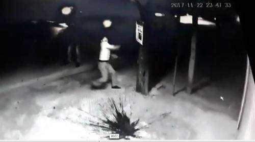 | Camera ghi lại cảnh kẻ lạ mặt ném chất bẩn vào nhà ông Hiếu. |