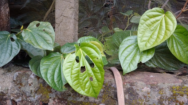 | Lá trầu tại vườn nhà ông Bi được Công an yêu cầu mang lên để làm tang vật. |