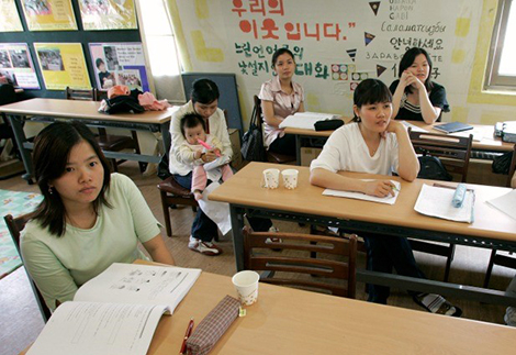 | Các cô dâu ngoại quốc tham dự một lớp học tiếng Hàn tại Trung tâm Nhân quyền của Phụ nữ nhập cư tại thủ đô Seoul, Hàn Quốc. Ảnh: Reuters |