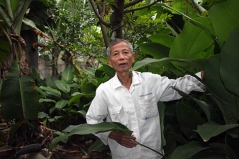 Ông Nguyễn Văn Bạc bên vườn dong nhà mình. |