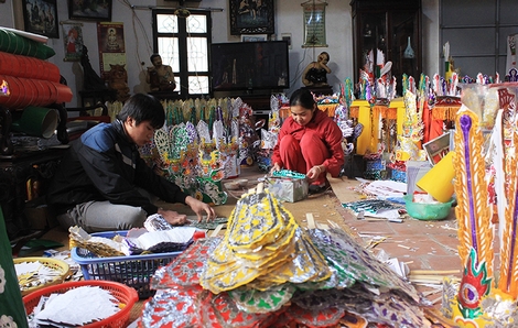 | Với người dân làng nghề làm vàng mã thì Rằm tháng 7 là tháng làm ăn hiệu quả nhất. |