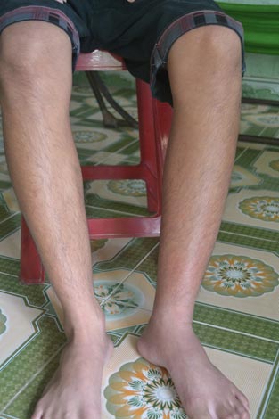 | Một trong những nạn nhân của rắn đuôi đỏ là em Võ Thanh Thật. Sau 5 ngày bị rắn cắn, chân em vẫn còn sưng. |