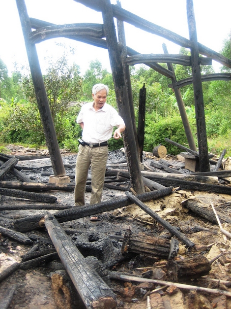 | Ông Nguyễn Xuân Liên buồn bã trong lần "Bảo tàng chiến tranh" ngoài trời ở Vực Quành bị cháy. |