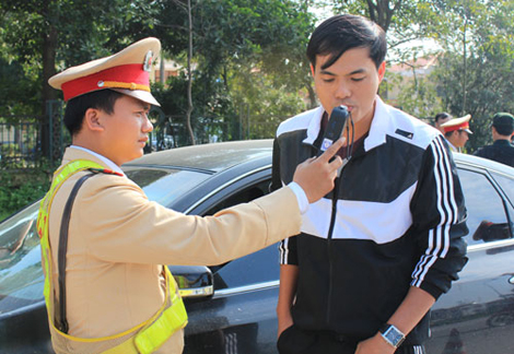 | CSGT kiểm tra nồng độ cồn của người tham gia giao thông. |