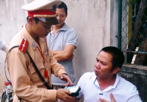 | Ông Mai Đình Cẩn ở TP Đồng Hới, Quảng Bình bày tỏ quan điểm không đồng tình việc kiểm tra nồng độ cồn. |