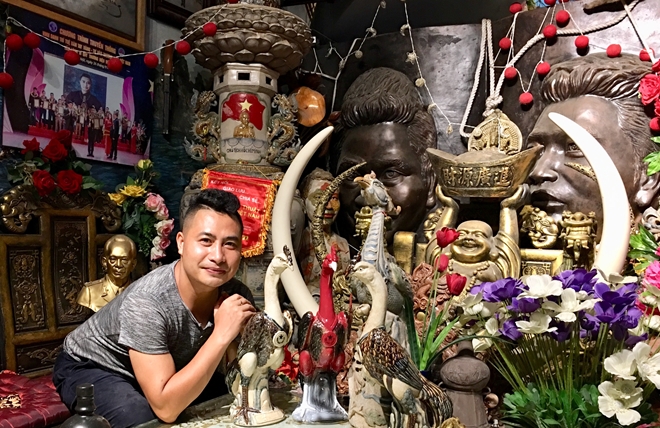 "Có lẽ, cái gen nghệ thuật của tôi được di truyền từ bố. Ông cũng là một nghệ nhân chuyên làm nghề điêu khắc gỗ. Đến năm 14 tuổi, tôi bắt đầu tìm hiểu về các hoa văn, mỹ thuật trong đình, đền chùa.