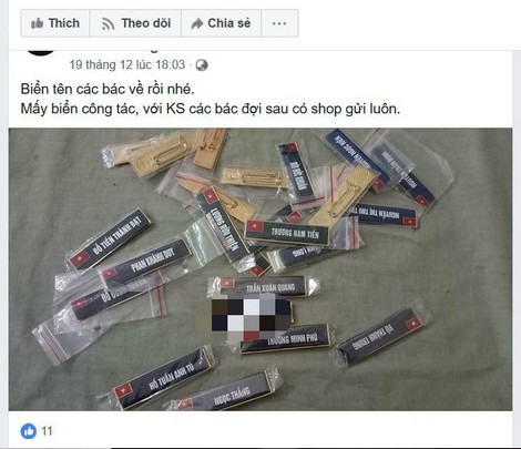 | Một cửa hàng trên mạng xã hội rao bán bảng tên. |