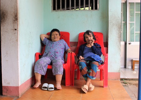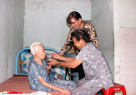 | Cô Lời (bìa trái) luôn quan tâm, chăm sóc các cụ ông, cụ bà ở trung tâm như những người thân trong gia đình. |