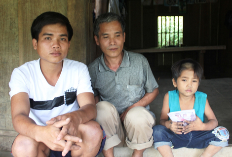 Cha con, ông cháu ông Cụt Phò Sang hằng ngày ngóng trông chị Moong Thị Mây và Cụt Thị My bị lừa bán qua Trung Quốc. |