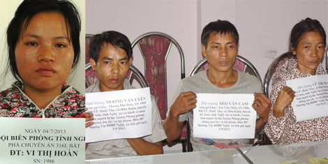 Các đối tượng buôn bán người bị lực lượng Công an và Biên phòng ở Nghệ An bắt giữ. |