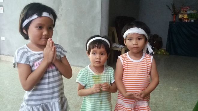 Trong tang lễ của các nạn nhân xấu số, hình ảnh 3 đứa trẻ đầu quấn khăn tang vẫn ríu rít nói cười khiến ai chứng kiến cũng thấy xót xa. Chúng còn quá bé để hiểu giông tố đang ập xuống đầu mình.