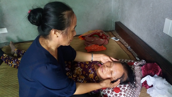 Trong ngôi nhà xập xệ, rách nát bà Mơ vẫn nằm yên vị trên chiếc giường cũ, lúc tỉnh lúc mơ. Bên cạnh, người thân và hàng xóm láng giềng luôn túc trực để động viên, an ủi và quan trọng là canh không cho bà được “làm liều”.