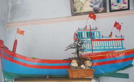 | Một trong hai mô hình tàu do con trai lão làm. |