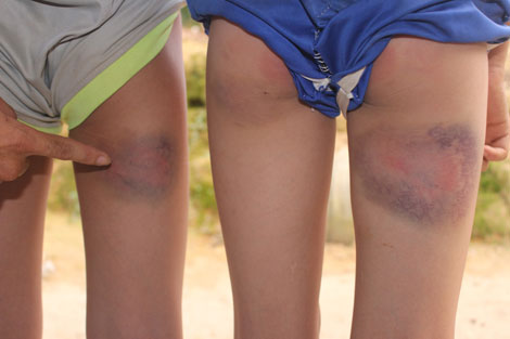 Cùng chung sự phản ánh này, các phụ huynh của cả 5 em học sinh còn lại cung cấp thêm: Sau khi kiểm tra thì phát hiện các cháu bị chấn thương, bầm tím ở phần mông và đùi. Một số cháu đi lại trong trạng thái khập khiễng.