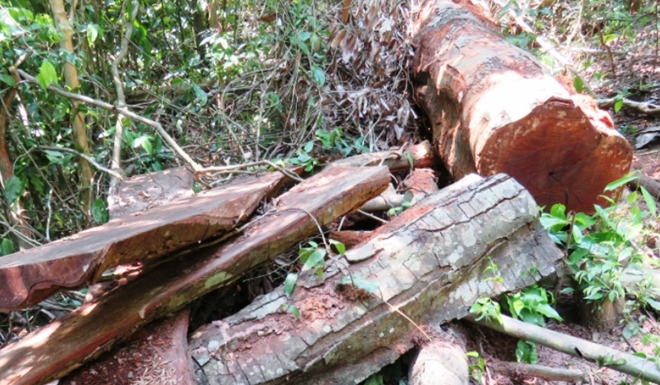 Tại tiểu khu 303, một cây gỗ huỵnh rất lớn bị lâm tặc cưa xẻ gỗ thành phách, chưa kịp lấy đi với tổng cộng 23 phách gỗ với tổng khối lượng trên 3m3… Ở nhiều khoảnh rừng trong rừng già Trường Sơn, nhiều khu vực đã bị lâm tặc đốn hạ rất nhiều gỗ lớn.