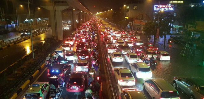 | Hàng loạt phương tiện giao thông bị chết máy. |