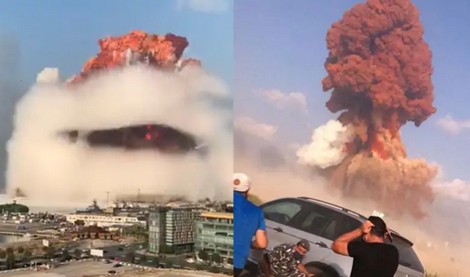 | Hình ảnh đám mây nấm xuất hiện ở Beirut sau vụ nổ. ảnh: ITN |