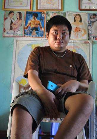 Chúng tôi tìm đến nhà thầy giáo Bình khi lớp học buổi sáng vừa tan. Trong căn phòng nhỏ chừng 15 mét vuông chỉ còn lại mình anh. Thời tiết oi bức khủng khiếp của mùa hè khiến sức khỏe anh  không tốt, nó khiến anh hay bị choáng.