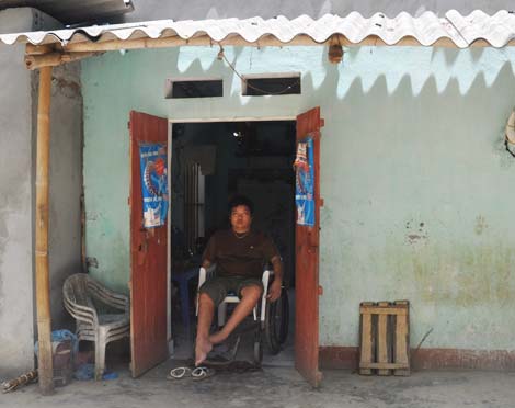 Nhiều năm rồi, anh Bình phải sống cuộc sống của một người tàn tật độc thân nên mọi sinh hoạt thường phải nhờ hàng xóm hoặc những người đi đường giúp đỡ. Nhiều khi, đến giờ nấu cơm, nếu hàng xóm đi vắng không giúp được, anh Bình phải lăn xe ra ngồi ở bậu cửa nhà mình. Lúc đó, nếu vớ được người làng nào đi qua anh sẽ nhờ họ vào cắm cho nồi cơm. Rảnh hơn nữa thì anh nhờ họ luộc cho mớ rau, rang cho quả trứng. Thế cũng xong bữa.