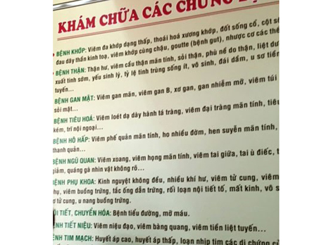 | Bảng khám chữa bệnh trong phòng khám. |