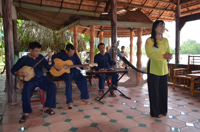 | Bên sông Vàm Cỏ Đông, đờn ca tài tử luôn là món ăn tinh thần không thể thiếu trong cuộc sống. |