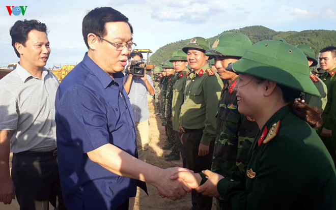 | Phó Thủ tướng Vương Đình Huệ thị sát tại hiện trường điểm cháy và thăm hỏi, động viên lực lượng tham gia chữa cháy rừng ở Hà Tĩnh. |