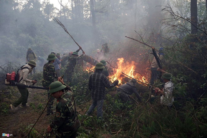 Tất cả lực lượng đang ứng trực tại hiện trường lại lao vào điểm lửa để giành giật từng khoảnh rừng, từng gốc cây với ngọn lửa hung tàn trong nắng hạn. Giáp mặt, gồng mình với ngọn lửa rừng rực, bỏng rát, anh em như quên đi khói, bụi, gió lào bỏng rát, vết bỏng hay trầy xước... việc dập lửa cứu rừng với các anh lúc này không còn là mệnh lệnh mà đó là tình cảm với cây rừng, với núi Hồng Lĩnh biểu tượng của đất Hồng Lam.