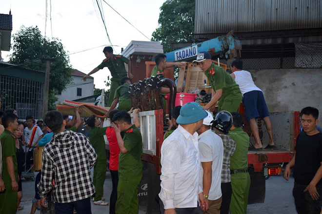 | Công an Hà Tĩnh giúp dân sơ tán, di dời trang thiết bị, hiện vật khỏi khu vực nguy hiểm do cháy rừng. |