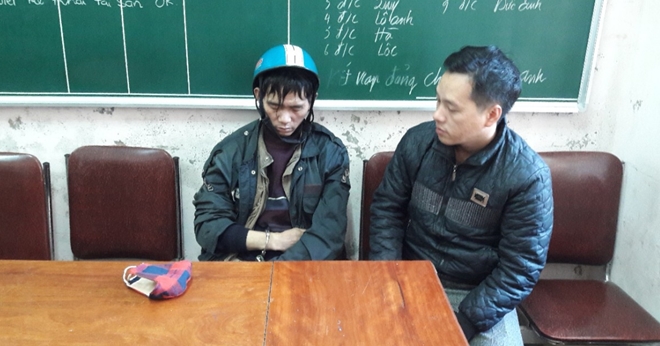 | Đối tượng Kha Thanh Tài (trái) tại Cơ quan CSĐT Công an huyện Tương Dương. |