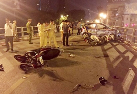 | Hiện trường vụ TNGT nghiêm trọng trên cầu vượt Thái Hà đêm 8/11/2015. |